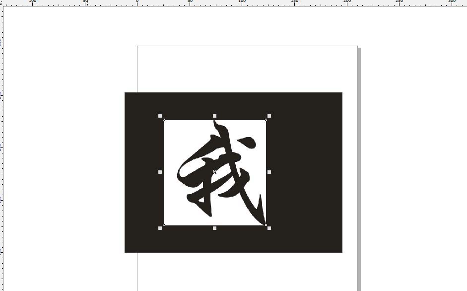 3、繪制一個矩形把掃描的字放在矩形里面(矩形填充為黑色)。