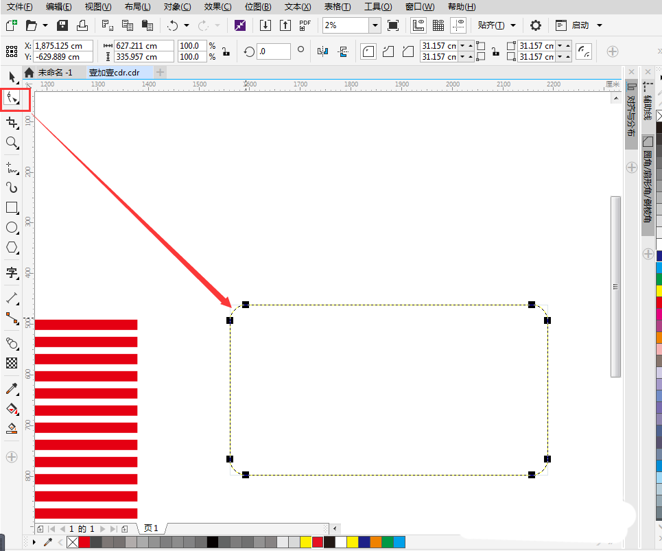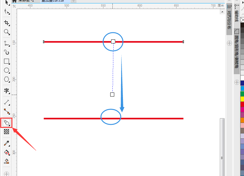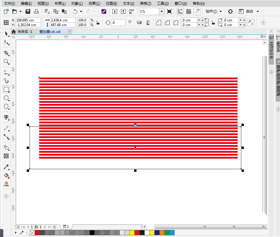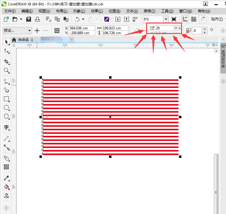 用矩形工具畫出矩形,去除邊框,填充紅色;將長條矩形復制一個,平移拉出到合適的高度;點擊左側工具欄中的“調和”工具,點擊第一個長條矩形,點住不放手,拖至第二個長調矩形處;在“調和對象”中,調整矩形之間的間距,調整至合適間距即可。