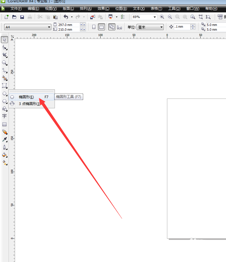 2、選擇橢圓形,在文檔中畫一個橢圓,如下圖所示。