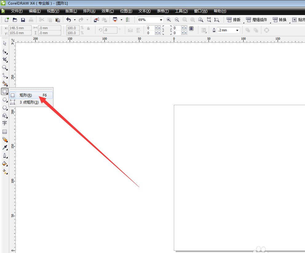 2、選擇【矩形】工具,在文檔中畫一個矩形,選擇挑選工具,