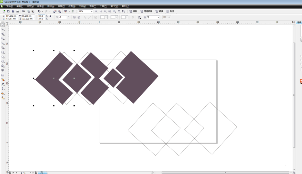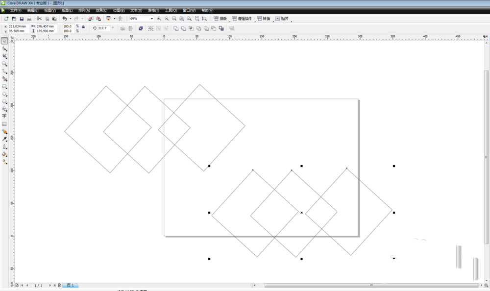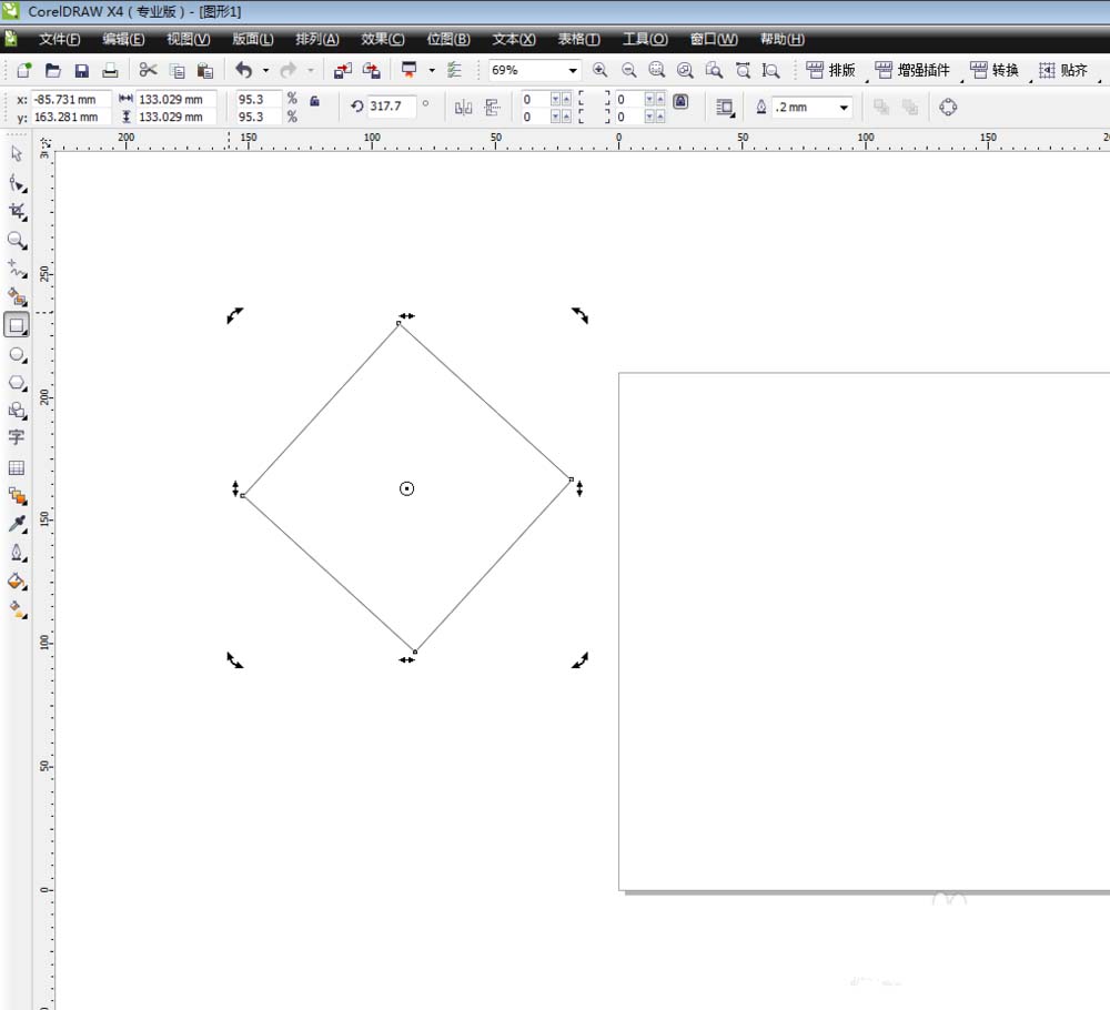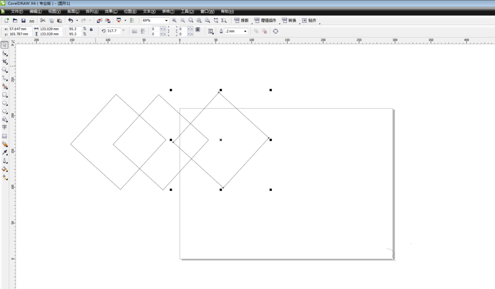 3、選中矩形,開始旋轉矩形,然后左鍵移動矩形,鼠標右鍵復制矩形,如下圖。