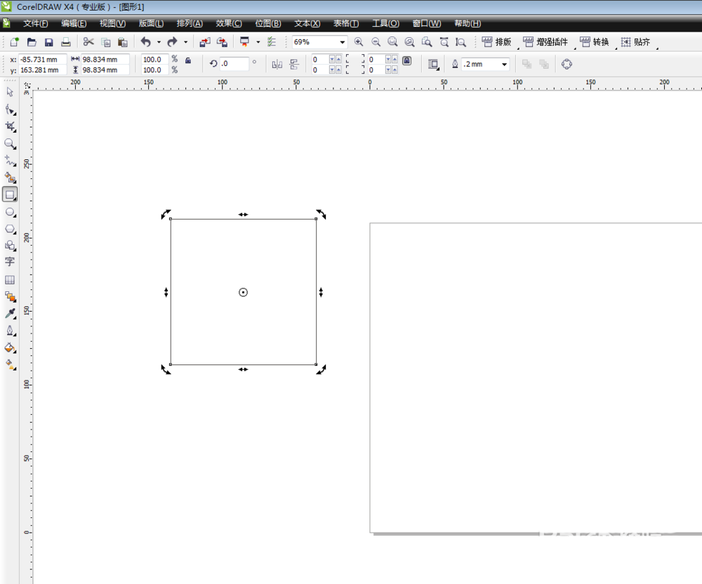 9、選擇挑選工具,把剛才填充的矩形進行分離,如下圖所示。總的來說智能填充工具和普通填充工具的區別就在于 智能填充是區域內填充,而普通填充是整個圖形填充,