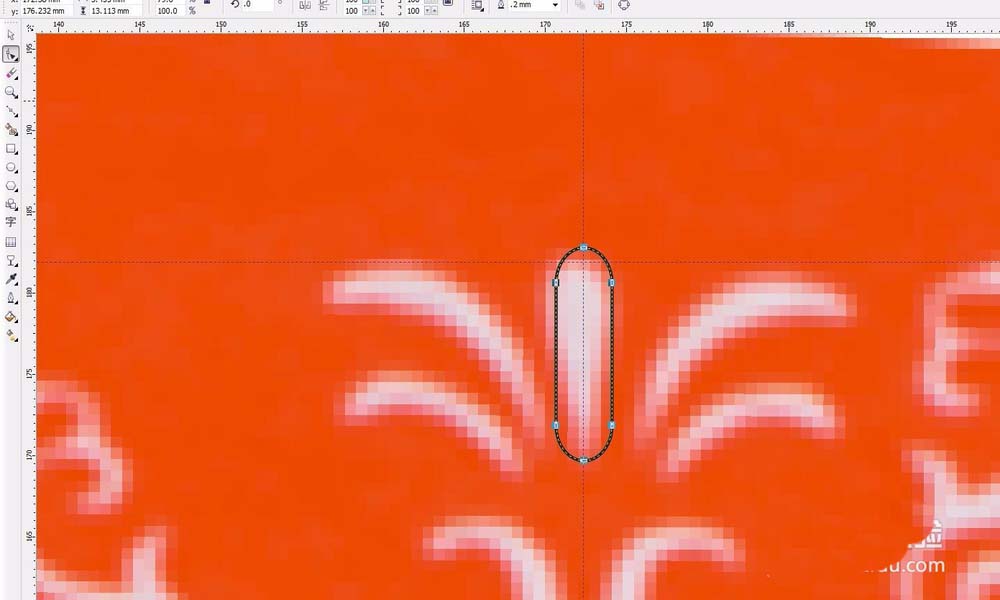 1、先不要急著去畫,先調出輔助線,將花紋扭轉成正的平行的狀態。這樣左右兩邊是完全對稱的,那么就可以只畫一邊,然后復制一個過去就行了,會省很多的時間。