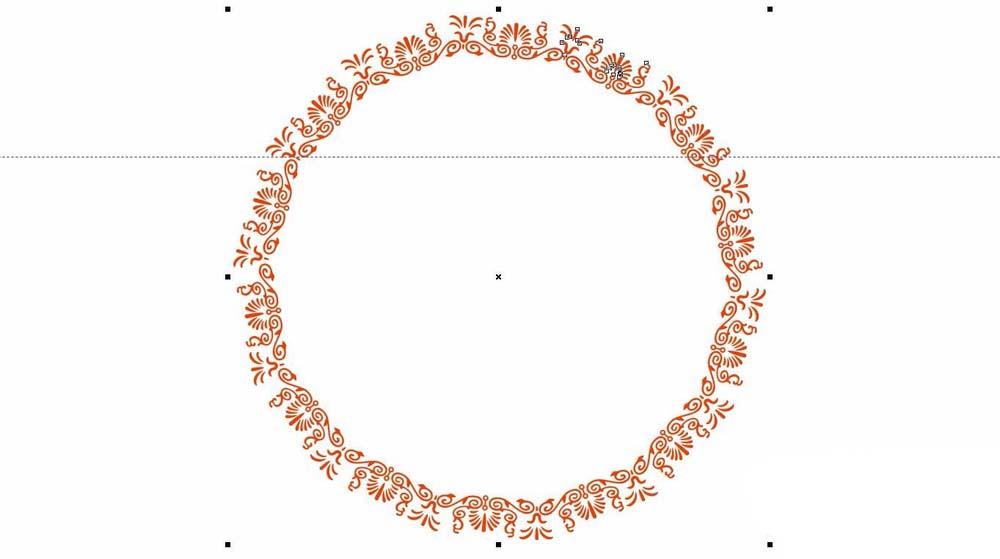 6、我想要的是一個圓形的花邊,所以需要將這個圖形旋轉一周。當然可以定義藝術筆直接變為圓形,但是這跟樣品會出現不符合的現象,所以還是手動旋轉復制吧。可以將中心點放在圓形的中心部分