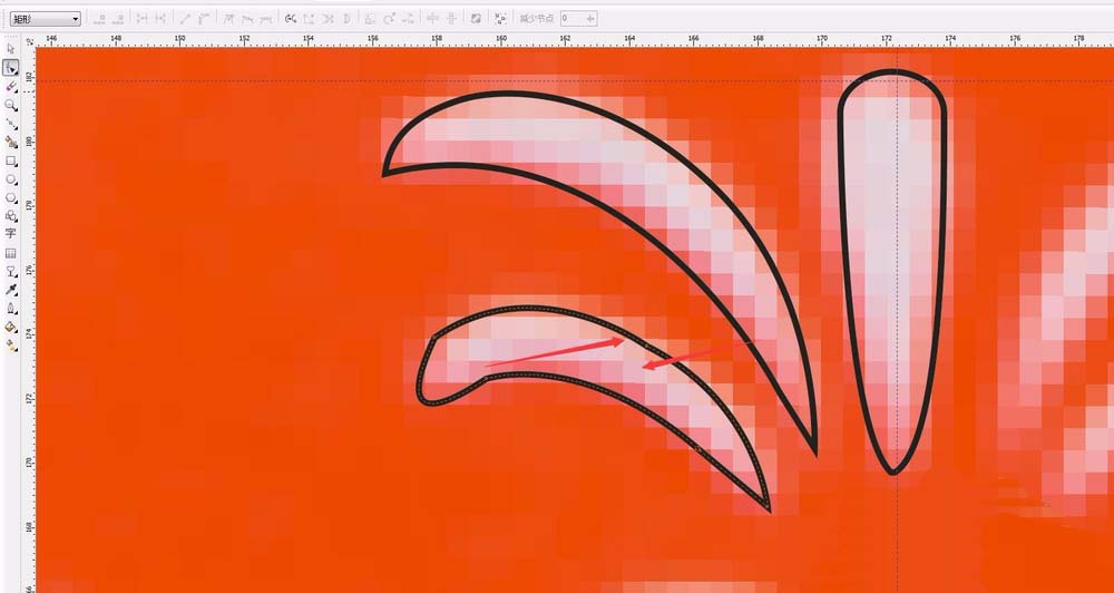 3、左半部分,用貝塞爾工具繪制,很多人說貝塞爾工具不好用,沒關系,第一次畫的不完美沒有關系,,可以后來通過形狀工具調整。在不平滑的地方,這個節點的兩邊,分別添加節點。