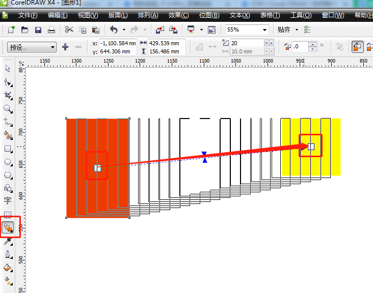 2、選擇“交互式調(diào)和工具”,點(diǎn)擊其中一個(gè)矩形并向另一個(gè)矩形中間拖動(dòng)。