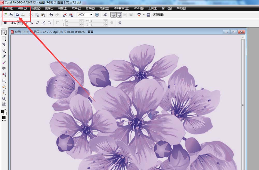 8、點(diǎn)擊確定以后,找到軟件上方,點(diǎn)擊保存按鈕,這樣CorelDRAW中的位圖可直接變?yōu)樗{(diào)整的圖片顏色如圖,
