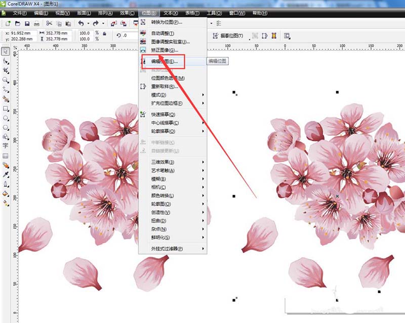 3、選中副本,對(duì)其進(jìn)行操作,選中以后,執(zhí)行位圖-編輯位圖命令,如圖