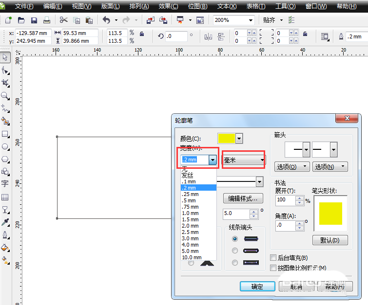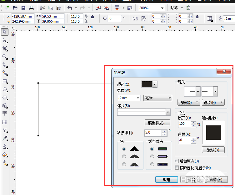4、彈出輪廓筆屬性框,如圖所示。