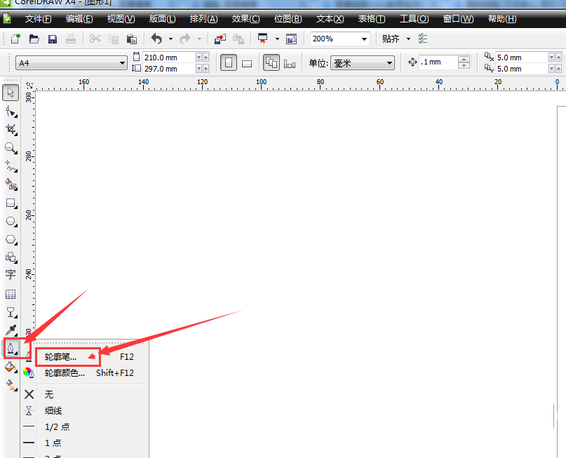 1、打軟件,新建文件,找到輪廓筆工具。如圖所示