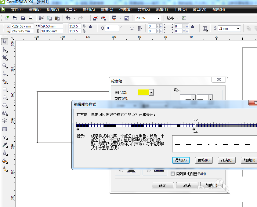7、改變線條的樣式,這里注意下面有編輯樣式,這個編輯樣式可以改變線條花樣及其間隔。如圖