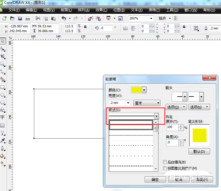 cdr圓形外框怎么使用輪廓筆修改線條樣式?