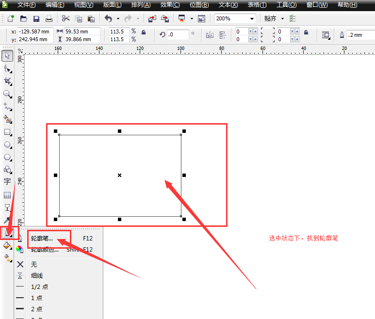 3、在選中矩形的基礎(chǔ)上找到輪廓筆。如圖,