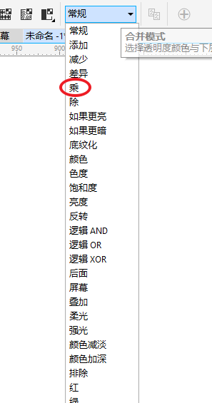 5、然后選擇透明度工具,將合并模式改為“乘”。