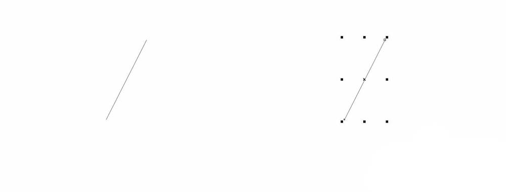 1、首先打開CDR軟件。新建一個(gè)文件,尺寸任意設(shè)定。然后選擇工具欄中的直線工具,繪制一條斜線。如下圖所示。可以在屬性欄中設(shè)置線的粗細(xì),比如我設(shè)置為0.3。這個(gè)要根據(jù)文件的大小而定,尺寸小的線就細(xì)一點(diǎn)。尺寸大的就設(shè)置的大一點(diǎn)。