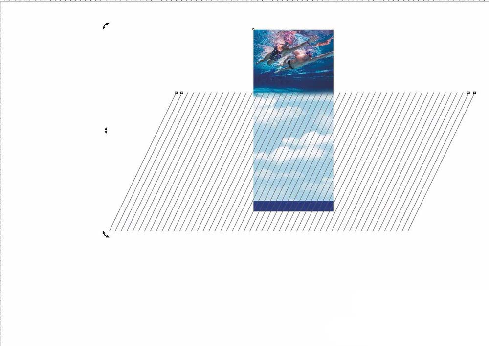 4、如果想要線條密集一點(diǎn),數(shù)量可以設(shè)置的多一點(diǎn)。比如100都是可以的。然后我們將這些直線整體移動(dòng)到文件中觀察一下。會(huì)發(fā)現(xiàn)線條太多了,下部分蓋不住。沒關(guān)系我們可以直接拉伸,然后斜切一下也是可以的。