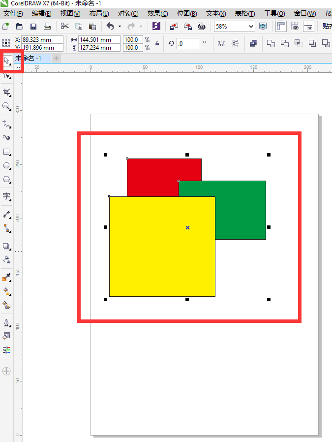 4、現在我們來講這三個矩形進行編組,選中工具箱中的選擇工具,選中這些需要編組的所有矩形,如下圖所示。