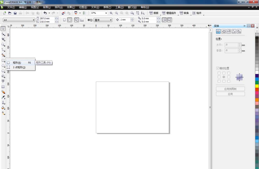 2、單擊矩形工具,畫一個矩形,設(shè)置名片大小參數(shù)單擊確定。
