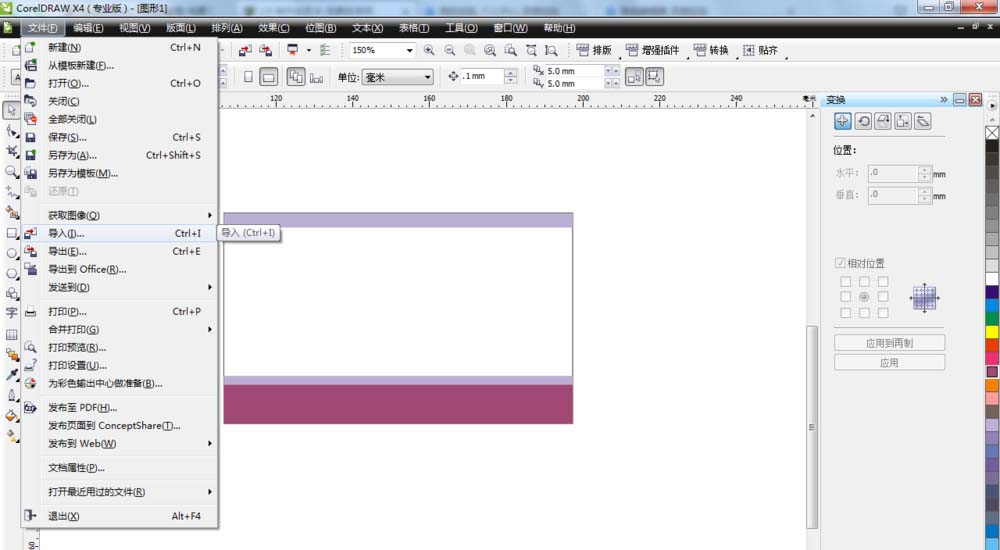 4、設(shè)置完成,單擊文件——導入命令,導入需要的文字或圖片,調(diào)整好位置和大小。