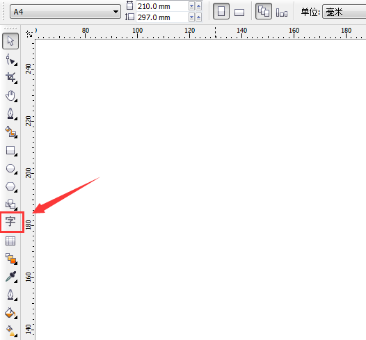 2、打開cdr之后在工具箱內找到文字工具,如圖所示:
