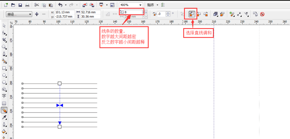 3、點擊調(diào)和工具選擇直線調(diào)和,選擇適合的線條數(shù)量