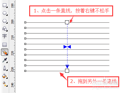 2、左擊線條按著不放,左手按著shift鍵。點擊鼠標(biāo)右鍵畫出一摸一樣的一條線。