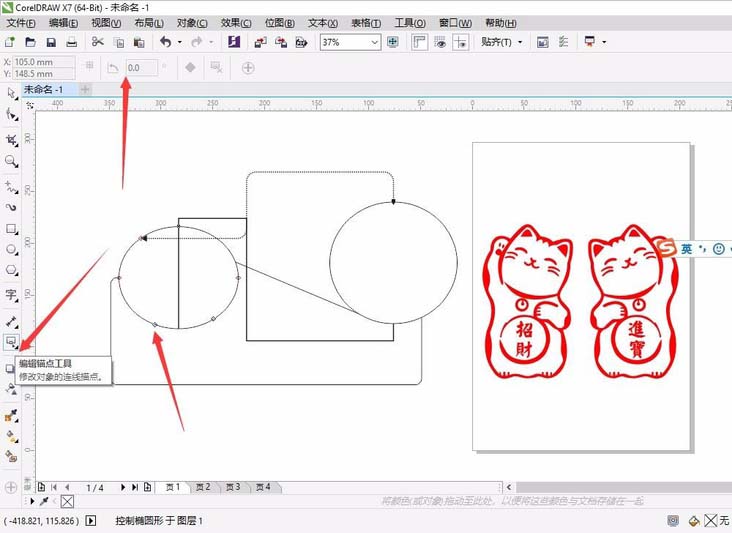6、編輯錨點方向,雙擊可以添加錨點,屬性欄可以調錨點方向和刪除錨點
