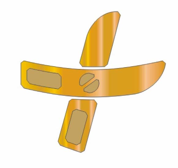 5、同樣用金色的漸變填充剪刀路徑,再用金色填充剪刀的孔洞路徑。
