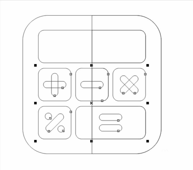 2、繼續使用矢量工具把計算器上面的各種的按鈕的路徑都一一繪制出來。