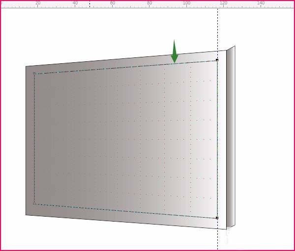 4、用“矩形工具”畫出矩形,移動輔助線,單擊“效果”菜單→增加透視,拉出透視效果,如圖所示: