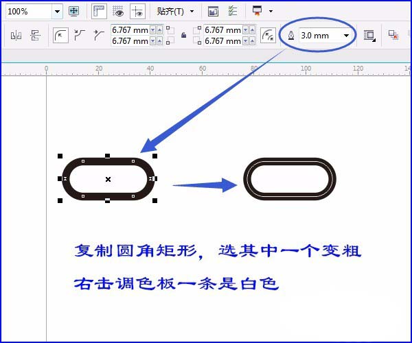 2、復制圓角矩形,選其中一個變粗,一條右擊調色板中的白色,如圖: