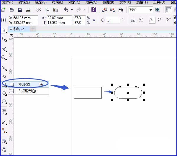 1、用“矩形工具”繪制一個矩形,再用“形狀工具”調整四周為圓角,如圖所示: