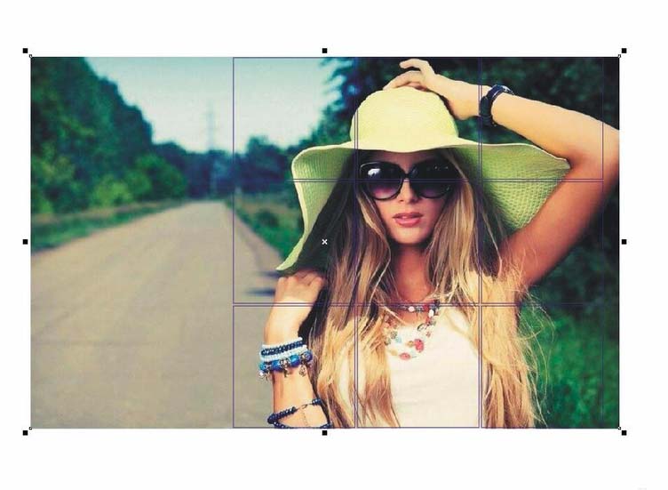 5、選中圖片,放置在容器中。將我們的圖片精確剪裁進九個小方格中,然后編輯圖片的大小,讓照片最美的部位完全顯示出來,保證九個小方格中都有內容,不要出現有百邊的現象