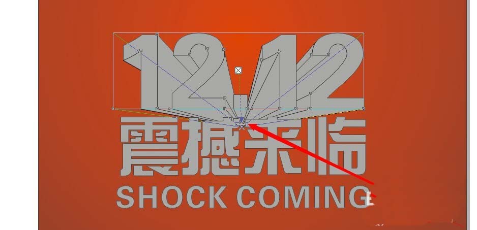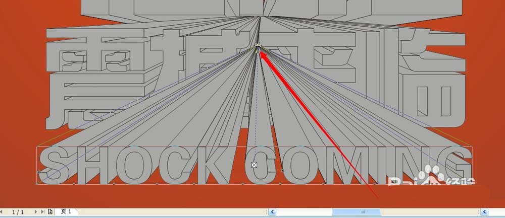 6、然后做中間文字的立體化效果,讓滅點在一個位置,同上做出下面的小字.然后還有我們的小字,因為我們讓它看上去是一個整體,所以立體化的方向應該跟打字是不同的,將滅點同樣放在大字滅點的位置,這樣就看到了從一個點發射出兩個不同的立體文字。