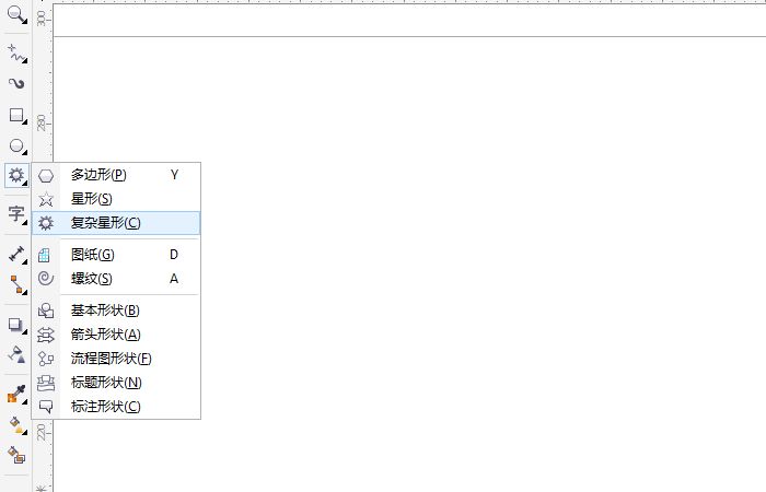 1、我們打開cdr軟件,在左側工具欄選擇"復雜星形"工具,如圖所示;