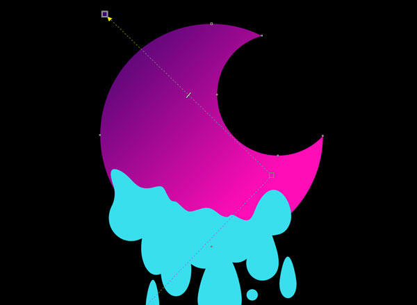 使用交互式填充工具將月亮物體內(nèi)的漸變拖動(dòng)到您選擇的位置。