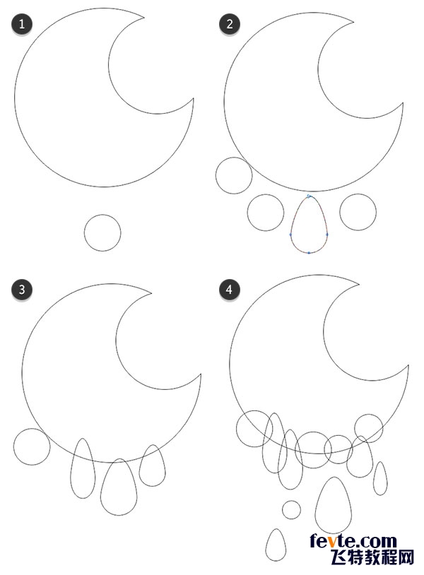 從月球下面的橢圓工具開(kāi)始安排幾個(gè)小圓圈 。