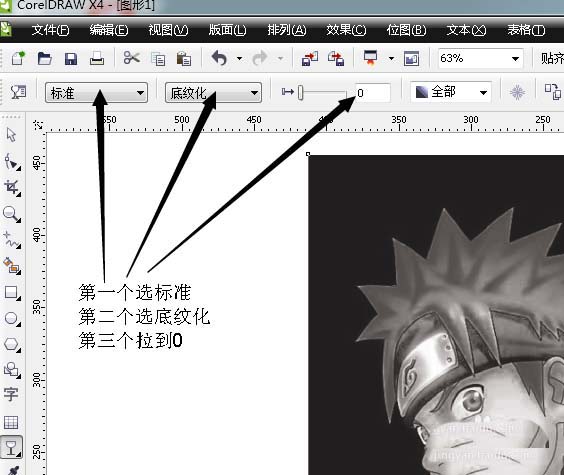 3、將左上角的第一個選項選擇標準,第二個選擇底紋化,然后將透明度調到0(去掉透明效果),就ok了。