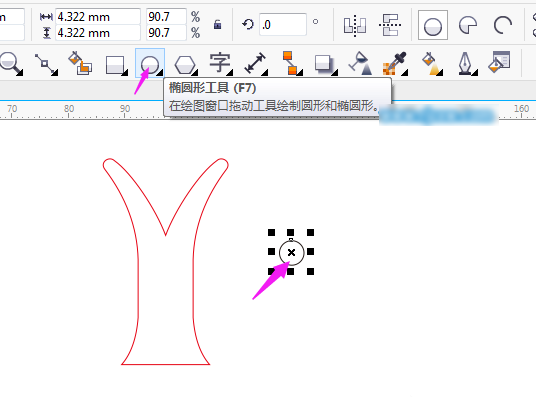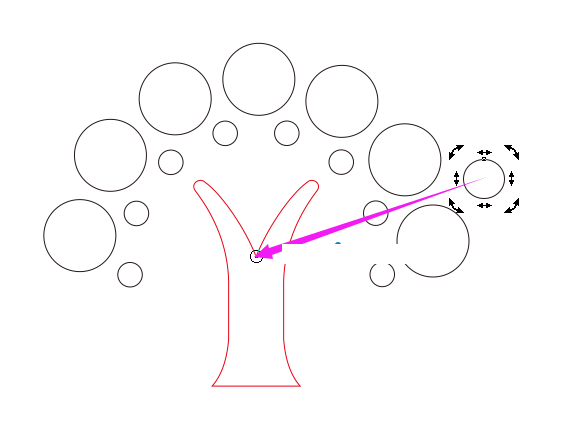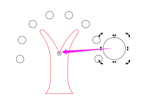 7、雙擊圓形,把中心點移到紅色圖形上。