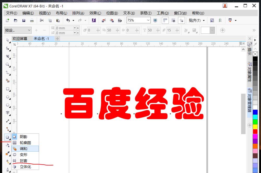 3、選中文字對象,選擇陰影工具箱中的封套工具