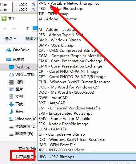 3、選擇需要導出的圖片格式,一般常用的是PNG或者是jpg都是可以的。