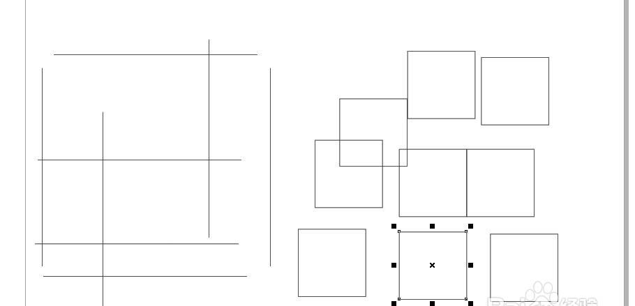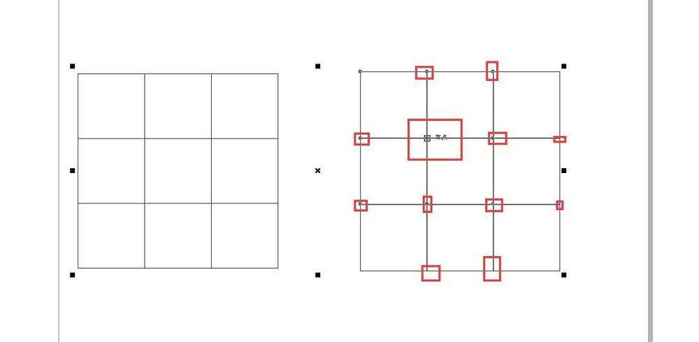5、對(duì)右邊的圖紙執(zhí)行Ctrl+ u,取消群組。發(fā)現(xiàn)圖紙可以拆成一個(gè)一個(gè)的方格,而不是直線。說(shuō)明它是由多個(gè)方格群組而成的,并沒(méi)有結(jié)合。