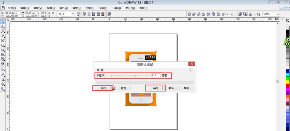 5、設(shè)置高斯模糊的半徑,然后再點(diǎn)擊“預(yù)覽”來調(diào)試模糊,最后點(diǎn)擊“確定”按鈕即可設(shè)置成功。
