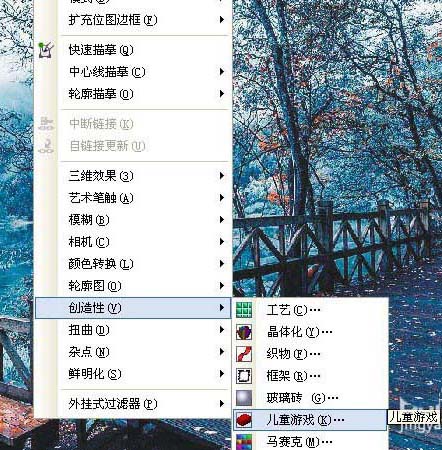 5、接著,鼠標左鍵單擊菜單【位圖】>>【創造】>>【游戲圖案】,如下圖所示。給素材圖片添加一個游戲圖案效果。