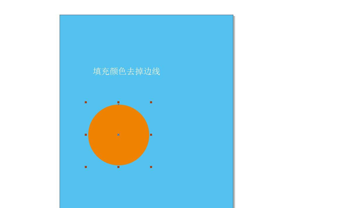我們要做一個(gè)有顏色的背景,顏色可以隨意填充,我這里填充的是藍(lán)色,填充方法挑選工具先點(diǎn)擊選中矩形框,然后鼠標(biāo)左鍵點(diǎn)擊顏色就可以填充了,填充之后鼠標(biāo)右鍵點(diǎn)擊上面的白色×方塊去掉邊線顏色(鼠標(biāo)右鍵點(diǎn)擊顏色是填充邊線的顏色,F(xiàn)12是設(shè)置邊線粗細(xì)的快捷鍵,在顏色最上面有一個(gè)帶有×號(hào)的四方塊,選中填充好顏色的物件點(diǎn)擊這個(gè)方塊會(huì)去掉顏色填充,右鍵點(diǎn)擊去掉邊線顏色)。