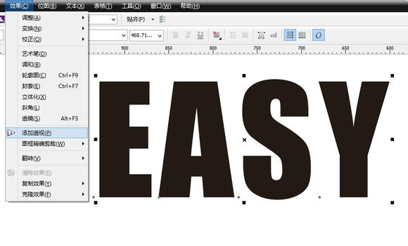 使用文本工具打出自己想要的字(文字顏色隨意),然后 效果 – 添加透視,透視效果隨意,按自己的想法來
