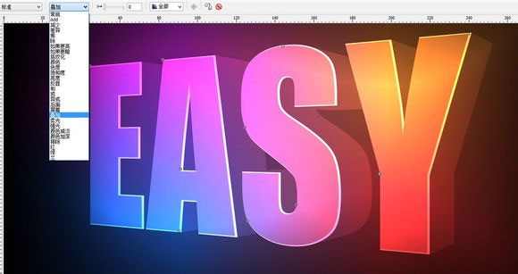 cdr怎么做炫彩立體字?本教程以打造EASY的炫彩英文立體字效果為例,手把手教大家Coreldraw制作炫彩立體字的方法,教程主要用到了矩形工具、文本工具、混合模式等基本工具,難度就是添加立體化以及炫光效果的打造,好了,話不多說,下面讓我們開始吧!