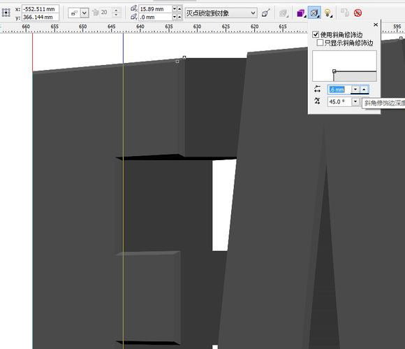 想做切角效果的這步是我想到的很方便的方法,加上一個立體化傾斜(默認的深度可能比較大調小點即可),觀察切角效果