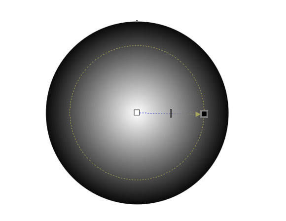首先畫一個正圓,漸變黑白填充,選擇輻射(輪廓色為無)