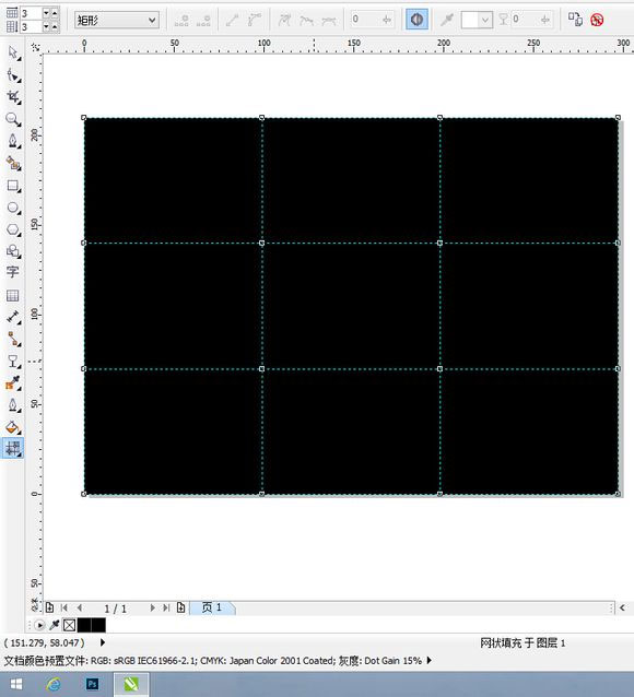 工具欄左下角最后一個,選擇網狀填充,點擊矩形,再看圖片左上角,將網格數調成3